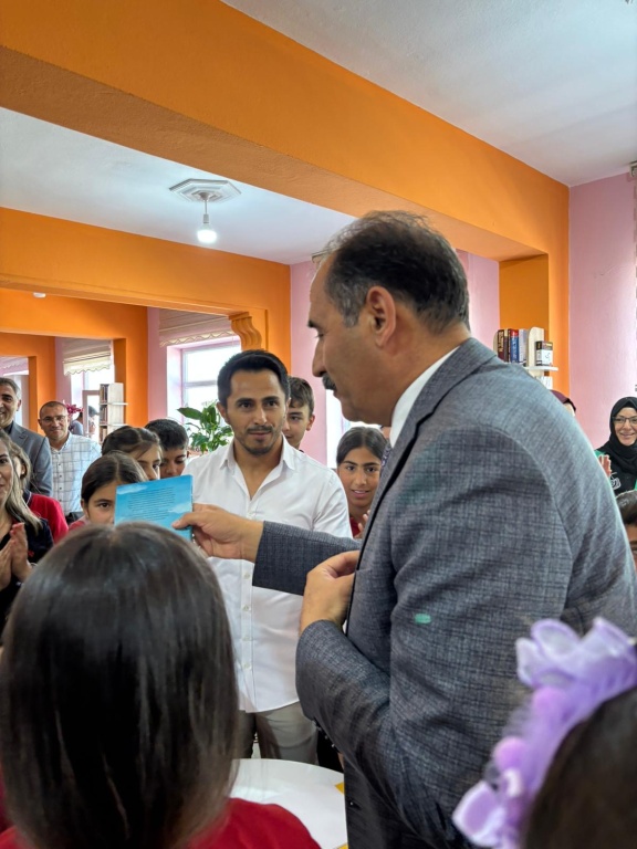 Okulumuz bünyesinde Hatay depreminde hayatını kaybetmiş olan Dr. Kamercan CEYLAN'ın anısını yaşatmak adına doktor arkadaşları ve hayırseverlerin yardımı, öğretmen arkadaşlarımızın çabalarıyla oluşturduğumuz 10.000 kitaplı kütüphanenin açılışı gerçekleşti. Açılışa; İl Milli Eğitim Müdürümüz Sn. Aziz GÜN, Milli Eğitim Şube Müdürleri, İl Müftümüz Sn. Zahit Demirel, Aile ve Sosyal Hizmetler İl Müdürü Sn. Selçuk Akgül, Gençlik ve Spor İl Müdürü Sn. Recai Şahin, Çevre Şehircilik ve İklim Değişikliği İl Müdürü Sn. Efkan Aras, Meteroloji 16. Bölge İl Müdürü Sn. Ezher Zengin, Vakıf Bank İl Müdürü Sn. Serdar Demir, Iğdır Üniversitesi Kütüphane ve Dökümantasyon Daire Başkanı Sn. İbrahim Kabalak, Iğdır Üniversitesi kütüphanecisi Sn. Rabia Erenler ve okul müdürleri, öğretmen ve öğrenciler katılım sağladı. İlkokul 4. Sınıf öğrencilerimizin " İstiklal Marşı" oratoryosunu seyrettiler. Okulumuzda kütüphanemizin oluşum sürecini anlatan sunumun ardından kütüphanemizi ziyaret eden Milli Eğitim Müdürümüz, öğrencilerin eşliğinde Yazar Şermin Yaşar' ın kütüphanemiz için göndermiş olduğu imzalı " Para Ağacı" adlı kitabının 10.000 kitap olarak etiketlenmesini gerçekleştirdi. "Sanat Sokağımızı ve Görsel Sanatlar Atölyemizi" ziyaret eden Milli Eğitim Müdürümüz ve kurum müdürlerimiz öğrencilerimiz tarafından yapılan çalışmaları inceledi ve emeği geçen öğretmenlere, öğrencilere teşekkür ettiler.